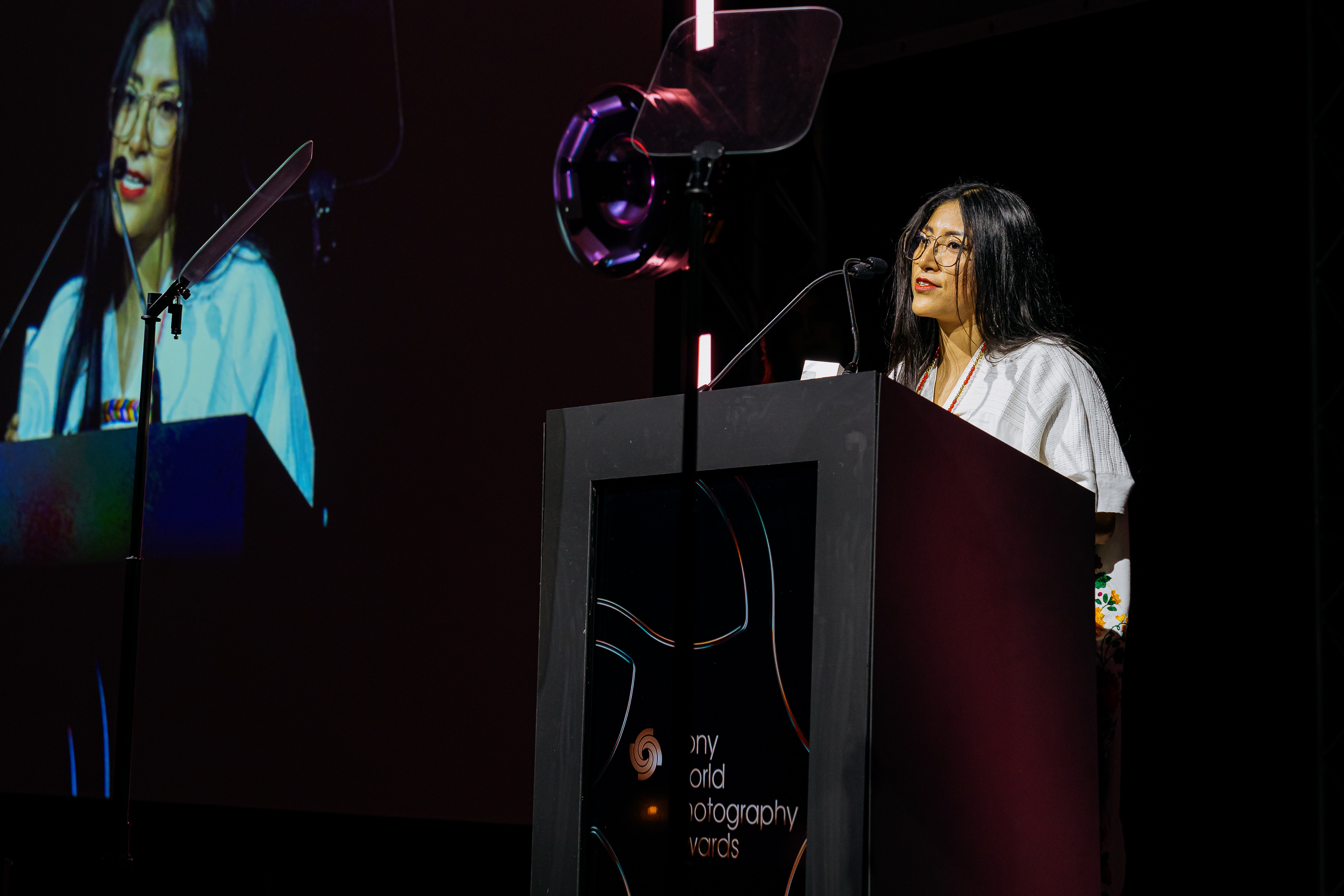 Her takker Citlali Fabián for prisen Årets fotograf under prisutdelingen i London. (Citlali Fabián, Photographer of the Year 2026 © Courtesy of Creo)