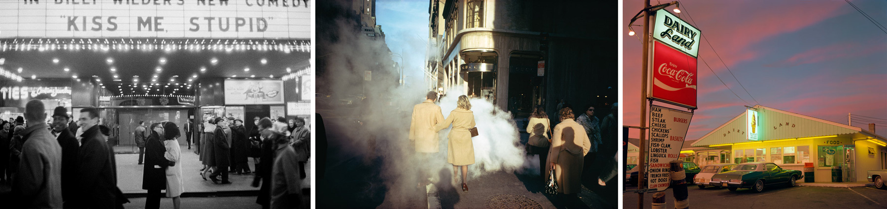 Et knippe av Joel Meyerowitz’ fotografier som er utstilt i Somerset House i London til 4. mai. © Joel Meyerowitz, Courtesy Huxley-Parlour Gallery and Howard Greenberg Gallery.